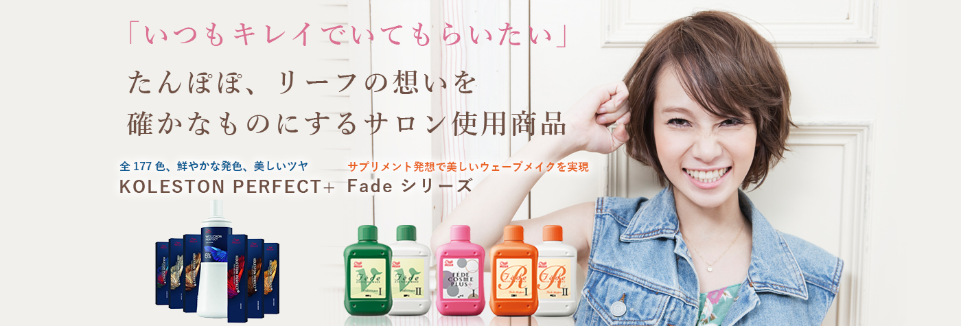 たんぽぽ、リーフではカラーリングやパーマなどの施術でお客様の思い描くスタイルを実現するのは、プロとして当たり前であるべきと考えます。さらに、たんぽぽ、リーフではお客様の髪や頭皮に良い、負担を掛けないように施術することにこだわります。そのために薬剤は高品質で安心安全であることが何よりも大切。