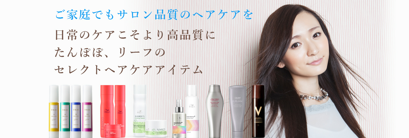 ご家庭での日常のケアでもサロンの品質を。「いつもキレイでいてもらいたい」たんぽぽ、リーフはその願いをお客様に実現して頂くため、ご家庭用のケア製品にもこだわります。